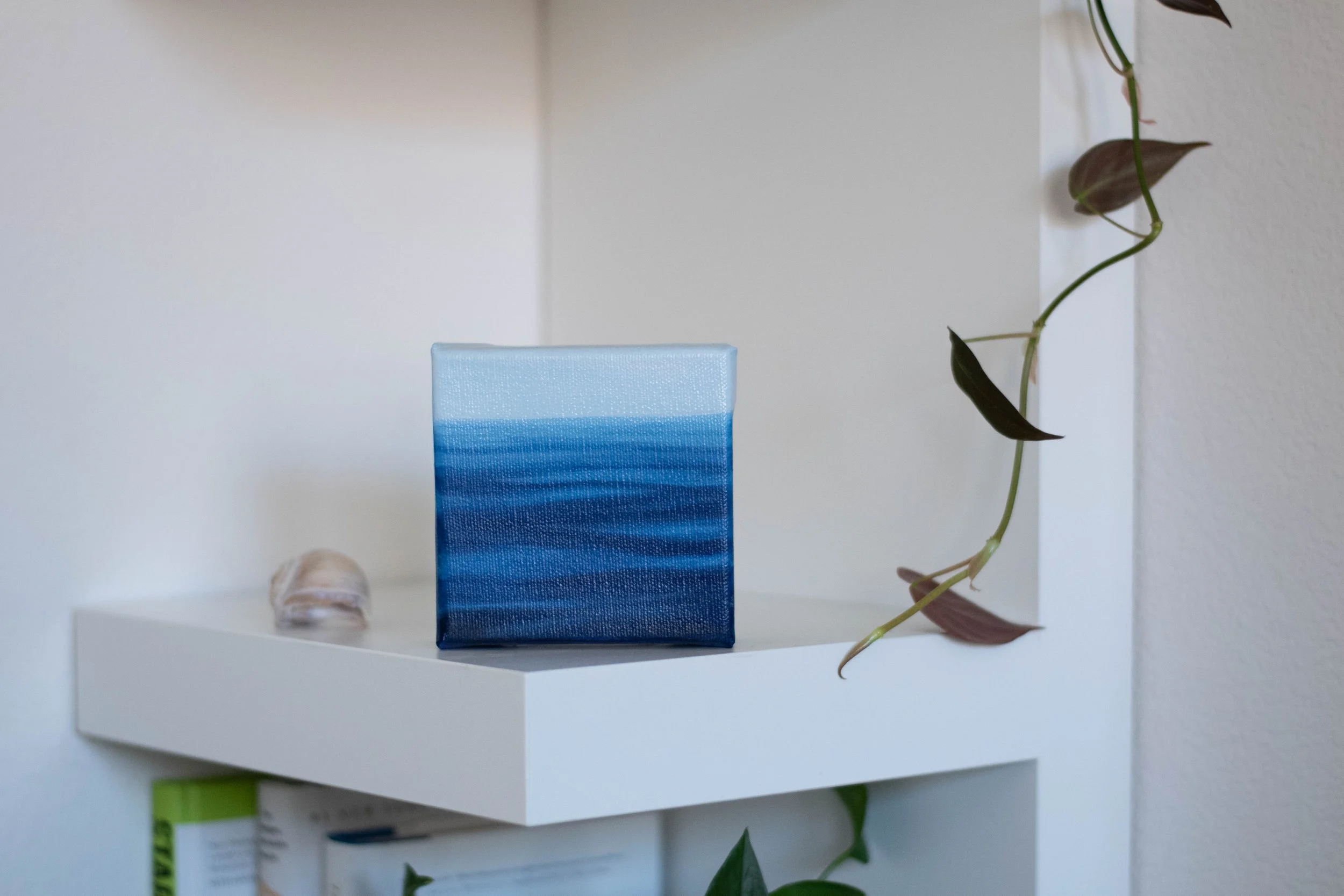 Painted on 4” x 4” x 1 ½” deep gallery wrapped canvas with all sides painted, so no framing is needed.